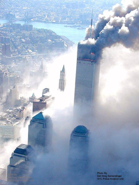 Einschlag im Nordturm um 8:46 Uhr, Einsturz um 10:28 Uhr (Sprengung)
