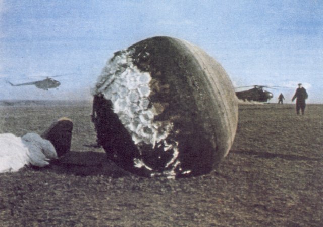 [Con el vuelo presunto de Gagarin sale también la afirmación que un cosmonauta de la "Unión Soviética" tiene que aterrizar con asiento catapulta y con paracaidista. Más tarde es afirmado que Gagarin había aterrizado precisamente en el territorio de su club aéreo de Saratov. Así hay la sospecha grande que el vuelo de Gagarin no fue más que un salto paracaidista normal de un avión de su club aéreo].