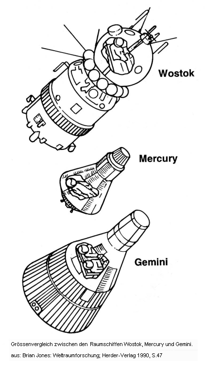-- comparación de Vostok, Mercury, y Gemini: Brian Jones: "Ciencia espacial" (orig. alemán: "Weltraumforschung"); edición Herder 1990, p.47