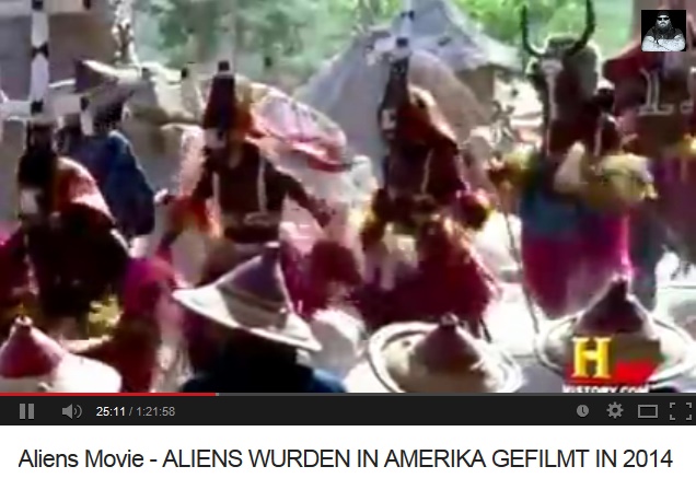 Giorgio A. Tsoukalos: "Noch heute feiern die Dogon ein Fest zu Ehren Nomos, und zur Erinnerung an den Besuch aus dem All, der in ferner Vergangenheit stattgefunden hat." (24min.26sek.) - "Woher wissen wir das? Bei diesem Fest werden hölzerne Masken getragen, die vor langer, langer Zeit hergestellt wurden." (24min.36sek.) - "Tatsächlich stammen sie aus der Anfangszeit dieses festlichen Brauchs." (24min.40sek.)