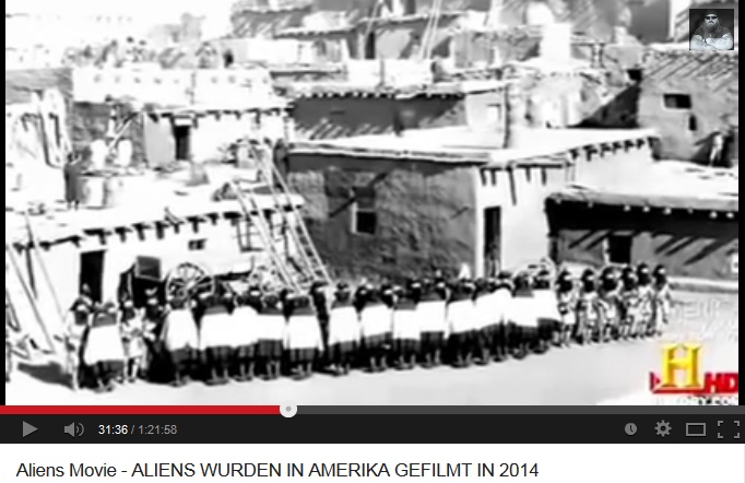 David Childress: "Für die Pueblo-Indianer wie die Zuni sind das ihre Himmelsgötter" (37min.25sek.) - "und sie haben alljährliche Feiern, bei denen sie diese Kostüme anziehen, spezielle Masken aufsetzen und die Ankunft der Götter nachspielen" (37min.33sek.) - "und sie sehen wirklich wie altertümliche Astronauten aus." (37min.36sek.)