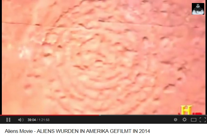 "Wir sind sehr abergläubische Menschen." (39min.1sek.) - "Sie [die Petroglyphen] waren schon immer Teil der Geschichte der Zuni" (39min.3sek.) - und sie sind immer hier gewesen." (39min.6sek.) - [Foto mit der Ritzzeichnung der Milchstrasse]: "Hier, wo wir jetzt sitzen." - und die Ritzzeichnung erweist sich als das Spiral-Sonnensystem (39min.8sek.) -