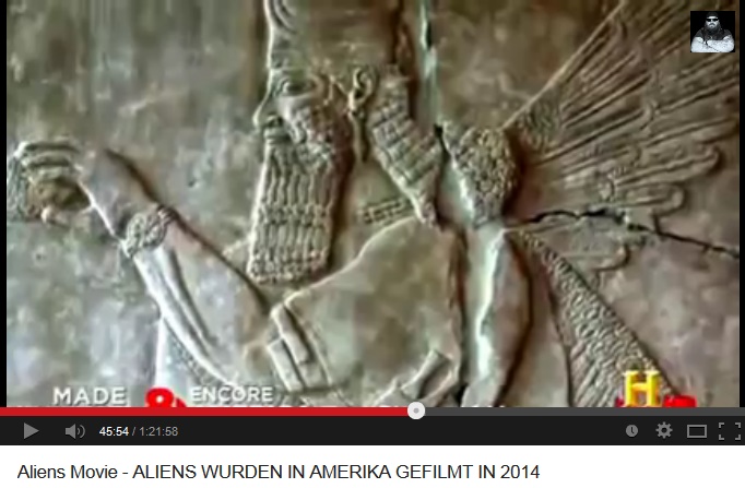 Tsoukalos: "In den alten, sumerischen Schriften finden sich Schilderungen darüber, wie diese Wesen vom Himmel herabstiegen" (45min.26sek.). - "Und ihnen wird die Bezeichnung 'Anunaki' gegeben"· (45min.29sek.). - "Der Begriff 'Anunaki' bedeutet: 'Die, die vom Himmel gekommen sind' " (45min.36sek.). - "Weiter kann man wortwörtlich darin lesen, dass diese Wesen in fliegenden Fahrzeugen vom Himmel herabkamen." (45min.43sek.) - "Und man findet nicht nur Beschreibungen der Anunaki, sondern es gibt auch viele Darstellungen von ihnen als Statuen, oder in Wandreliefs." (45min.55sek.) "Und es ist sehr interessant, diese Wesen genau zu betrachten. Sie sehen wie moderne Raumfahrer aus," (46min.2sek.) - "sie tragen merkwürdige Anzüge," (46min.4sek.) - "manche haben sogar eine Armbanduhr am Handgelenk" (46min.7sek.) - "Sie haben dicke Stiefel und Helme, und vor allem Flügel" (46min.11sek.) - "Und in allen Darstellungen, schriftlich und bildlich, schweben sie über 'den normalen Leuten'." (46min.18sek.) - "Die Frage kann also nur sein: Wer waren die Anunaki?" (46min.26sek.) - "Und wenn man den Berichten über diese frühen Ausserirdischen Glauben schenkt, waren es Raumfahrer, die die Erde vor unserer Zeitrechnung besucht haben." (46min.37sek.)