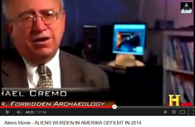 Historiker Michael Cremo (Autor von "Forbidden Archaeology"): "Es gibt viele Indizien dafür, dass wir nicht die einzigen im Kosmos sind." (48min.23sek.) - "und dass die Menschheit hier auf der Erde über lange Zeiträume intensiven Umgang mit intelligenten Ausserirdischen hatte." (48min.30sek.) -