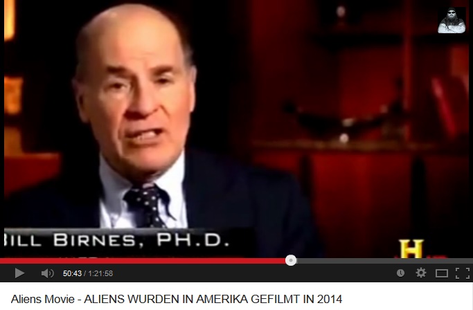 Bill Birnes: "Die Schöpfungsgeschichte, wie sie uns in der Bibel erzählt wird, findet sich auch in vielen anderen Schöpfungsgeschichten der ganzen Welt." (50min.50sek.) - "Auch die Sintflut, die Entwicklung der menschlichen Spezies und der Sprache findet man in vielen Mythologien." (50min.57sek.) - "Das alles weist darauf hin - und in der Bibel steht es sogar wörtlich - dass das Leben auf der Erde durch Kontakt mit einer ausserirdischen Lebensform entstanden ist." (51min.5sek.) - "Das steht in der Bibel, und wird in alten Kulturen erzählt" (51min.11sek.) - "Ich halte diese Berichte über die die frühen Besuche für glaubhaft, und ich glaube, dass es gute Beweise gibt. Und je schärfer versucht wird, diese Beweise anzufechten, desto härter läuft man gegen die Wand." (51min.23sek.). - "Es gab Astronauten in der Vorzeit, und sie besuchen die Erde seit Abertausend Jahren." (51min.27sek.) - "Sie haben den Keim für unsere heutige Zivilisation gelegt." (51min.31sek.)