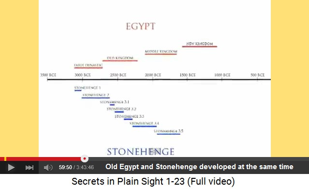 When Stonehenge was completed the Egyptian civilization was at it's top, so these two developments were at the same time (59min.46sec.). Archeology has not found any common element of Celts and Egypt, but the possibility of exchange of data is real (59min.54sec.).