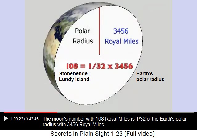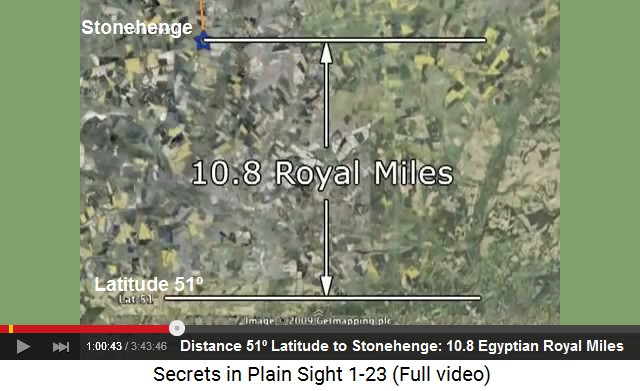 The distance of Stonehenge from the 51º Latitude is 10.8 Egyptian Royal Miles - The moon radius (average) is 1080 Royal Miles