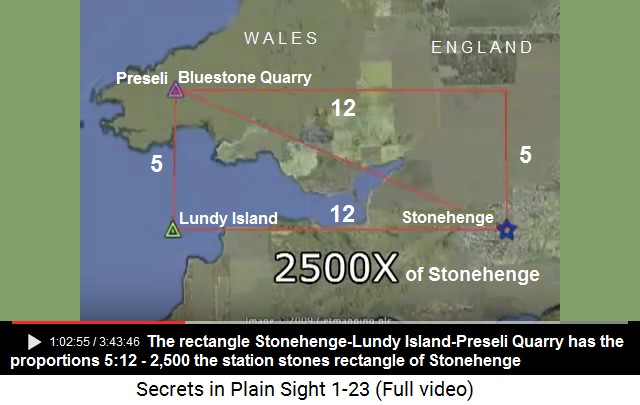 -- the triangle between Stonehenge, Preseli Hills quarry and Lundy Island is - in the proportions of 5:12 (1h2min.51sec.)