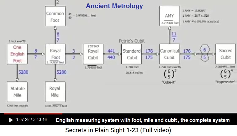 Royal Foot - Royal Cubit (3/2x Royal Foot) - Standard Cubit (Petrie's Cubit, 441/440 Royal Cubit) - Canonical Cubit (176/175 Standard Cubit) (1h7min.34sec.).