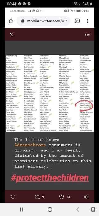 Adrenochrom-Konsumenten, Liste vom 7. April 2020: