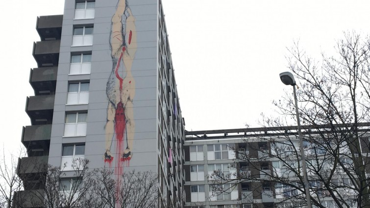Satanistische Wandmalerei von Bansky mit einer an den Füssen