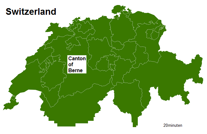 [1] Map of Switzerland with the canton of Berne: map from 20minuten